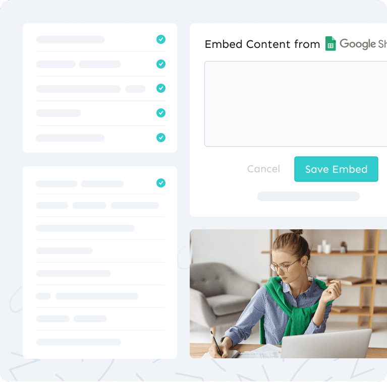 Place spreadsheets within specific processes or training modules, making it easier for your team to find and use critical information in context.